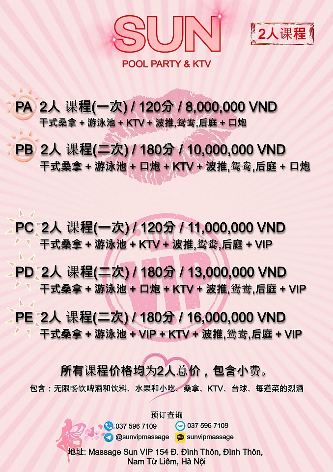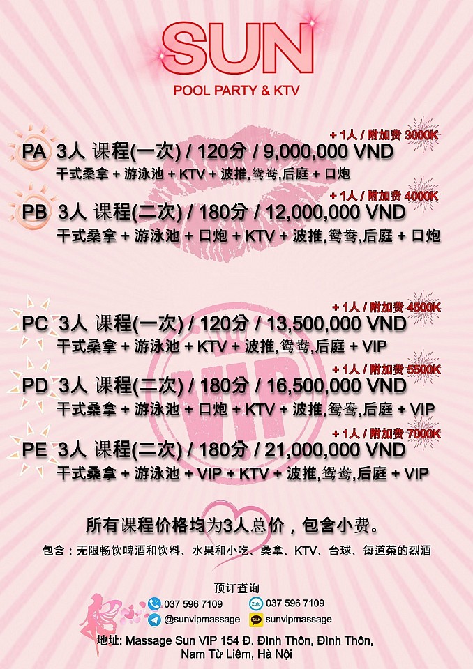 三人+ 泳池派对菜单